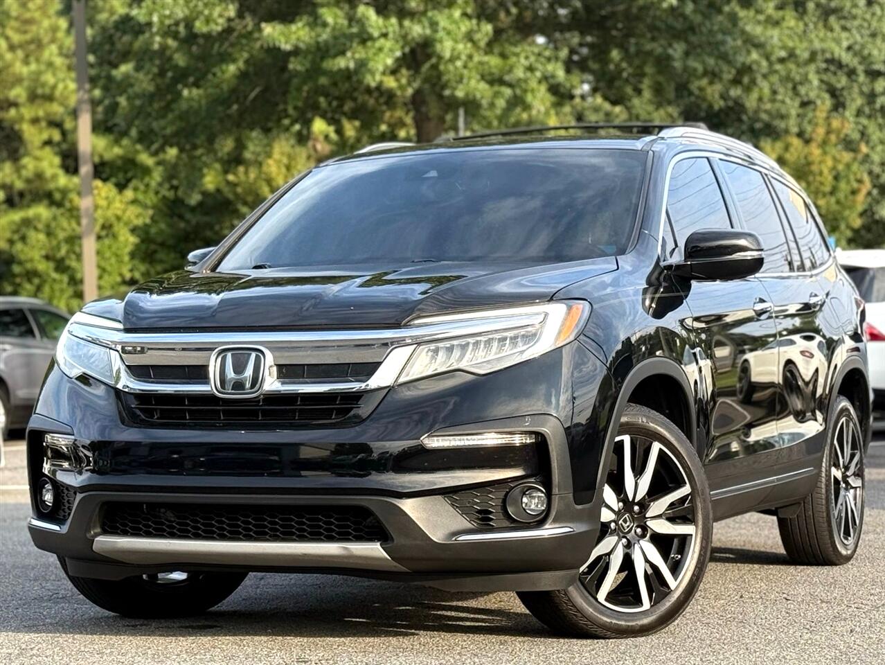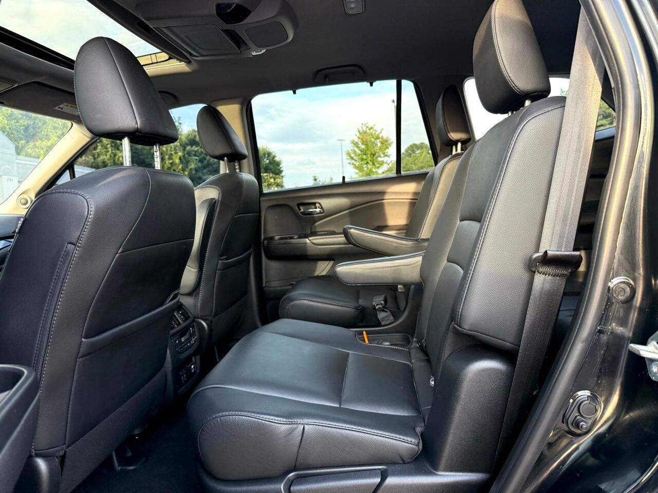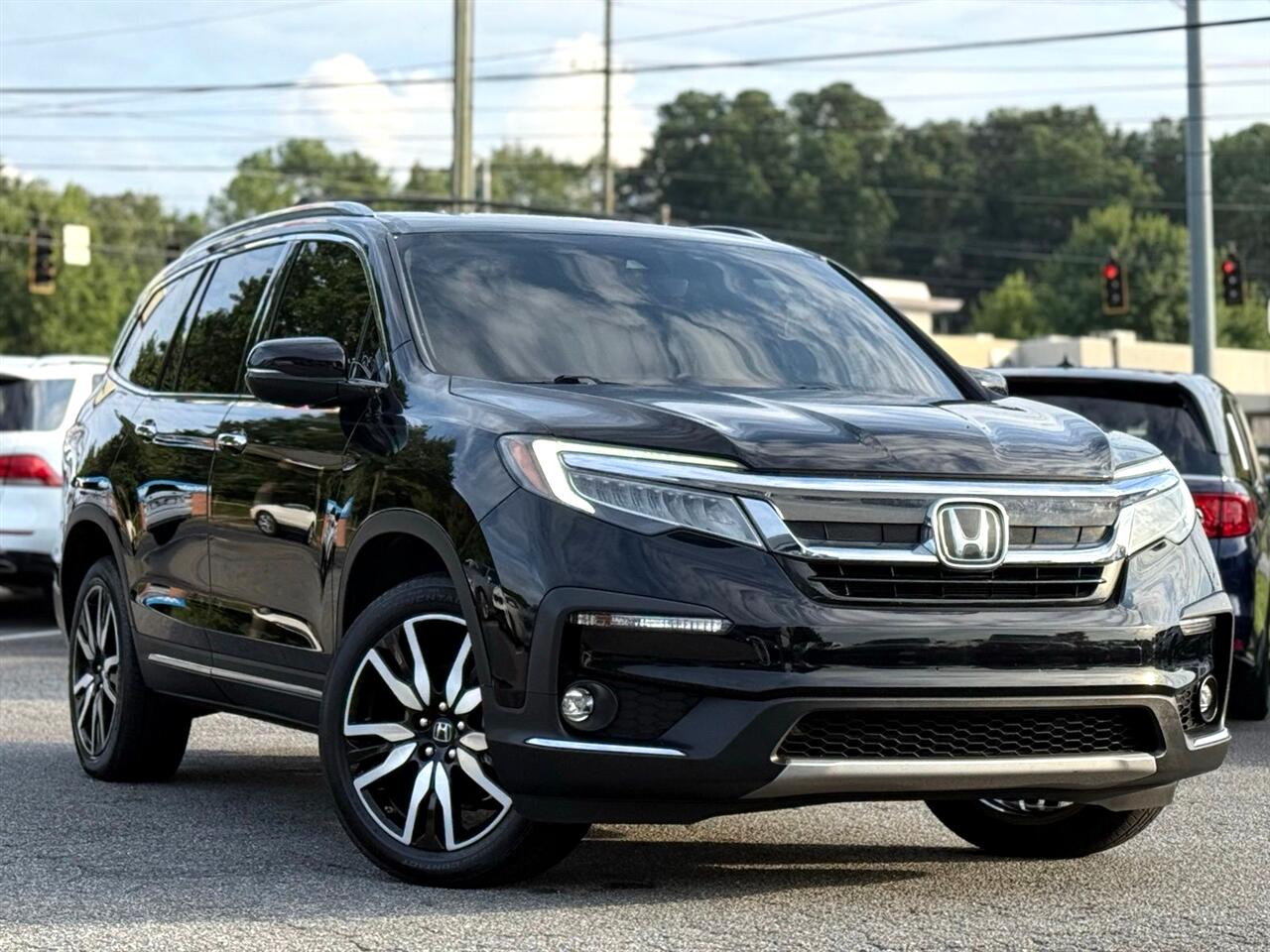 Black 2021 Honda Pilot Touring 7 Passenger AWD 9-Speed Automatic 3.5L V6 24V SOHC i-VTEC AWD, 10 Speakers, 3rd row seats: split-bench, 4-Wheel Disc Brakes, 4.33 Axle Ratio, A/V remote: CabinControl, ABS brakes, Air Conditioning, Alloy wheels, AM/FM radio: SiriusXM, Apple CarPlay/Android Auto, Auto High-beam Headlights, Auto-dimming Rear-View mirror, Automatic temperature control, Blind Spot Information (BSI) System warning, Brake assist, Bumpers: body-color, Compass, Delay-off headlights, Driver door bin, Driver vanity mirror, Dual front impact airbags, Dual front side impact airbags, Electronic Stability Control, Emergency communication system: HondaLink, Exterior Parking Camera Rear, Forward collision: Collision Mitigation Braking System (CMBS) + FCW mitigation, Four wheel independent suspension, Front anti-roll bar, Front Bucket Seats, Front Center Armrest, Front dual zone A/C, Front fog lights, Front reading lights, Fully automatic headlights, Garage door transmitter: HomeLink, Headphones, Heated door mirrors, Heated Front Bucket Seats, Heated front seats, Heated rear seats, Honda Satellite-Linked Navigation System, Illuminated entry, Lane departure: Lane Keeping Assist System (LKAS) active, Leather Seat Trim, Low tire pressure warning, Memory seat, Navigation system: Honda Satellite-Linked Navigation System, Occupant sensing airbag, Outside temperature display, Overhead airbag, Overhead console, Panic alarm, Passenger door bin, Passenger vanity mirror, Power door mirrors, Power driver seat, Power Liftgate, Power moonroof, Power passenger seat, Power steering, Power windows, Radio data system, Radio: 590-Watt Premium Audio System, Rear air conditioning, Rear anti-roll bar, Rear audio controls, Rear reading lights, Rear window defroster, Rear window wiper, Reclining 3rd row seat, Remote keyless entry, Roof rack: rails only, Security system, Speed control, Speed-sensing steering, Speed-Sensitive Wipers, Split folding rear seat, Spoiler, Steering wheel mounted audio controls, Tachometer, Telescoping steering wheel, Tilt steering wheel, Traction control, Trip computer, Turn signal indicator mirrors, Variably intermittent wipers, Wheels: 20" Machine-Finished Alloy.