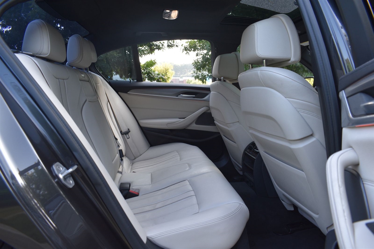 Dark Graphite 2017 BMW 5 Series 530i RWD 8-Speed Automatic 2.0L 4-Cylinder Ivory White Leather, 12 Speakers, 4-Wheel Disc Brakes, ABS brakes, Active Park Distance Control, Aerodynamic Kit, Air Conditioning, Alloy wheels, Aluminum Rhombicle Interior Trim, AM/FM radio, Apple CarPlay Compatibility, Auto tilt-away steering wheel, Auto-dimming door mirrors, Auto-dimming Rear-View mirror, Automatic temperature control, Brake assist, Bumpers: body-color, CD player, Comfort Access Keyless Entry, Delay-off headlights, Driver door bin, Driver vanity mirror, Dual front impact airbags, Dual front side impact airbags, Electronic Stability Control, Emergency communication system: BMW Assist eCall, Four wheel independent suspension, Front anti-roll bar, Front Bucket Seats, Front Center Armrest, Front dual zone A/C, Front fog lights, Front reading lights, Fully automatic headlights, Garage door transmitter, Genuine wood console insert, Genuine wood dashboard insert, Genuine wood door panel insert, Gesture Control, harman/kardon Surround Sound System, Head-Up Display, Heated door mirrors, HiFi Sound System, Illuminated entry, Leather Shift Knob, Leather steering wheel, Low tire pressure warning, Lumbar Support, Luxury Package, M Sport Package, M Sport Suspension, M Steering Wheel, Memory seat, Multi-Contour Seats, Navigation System, Occupant sensing airbag, Outside temperature display, Overhead airbag, Panic alarm, Parking Assistant, Passenger door bin, Passenger vanity mirror, Power door mirrors, Power driver seat, Power Front Seats, Power moonroof, Power passenger seat, Power steering, Power windows, Radio data system, Radio: AM/FM Audio System, Rain sensing wipers, Rear anti-roll bar, Rear reading lights, Rear seat center armrest, Rear window defroster, Rear-View Camera, Remote keyless entry, Security system, SensaTec Dashboard, SensaTec Leatherette Upholstery, Shadowline Exterior Trim, SiriusXM Satellite Radio, Soft-Close Automatic Doors, Speed control, Speed-sensing steering, Speed-Sensitive Wipers, Split folding rear seat, Sport Seats, Sport steering wheel, Steering wheel memory, Steering wheel mounted audio controls, Tachometer, Telescoping steering wheel, Tilt steering wheel, Traction control, Trip computer, Turn signal indicator mirrors, Variably intermittent wipers, Wheels: 18" x 8" Double-Spoke (Style 634), Wheels: 19" x 8" Fr & 19" x 9" Rr M Double-Spoke, WiFi Hotspot, Wireless Charging.