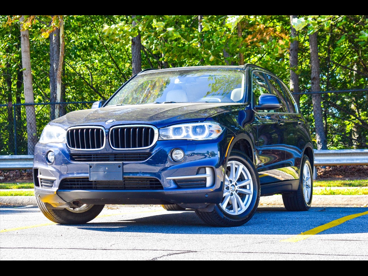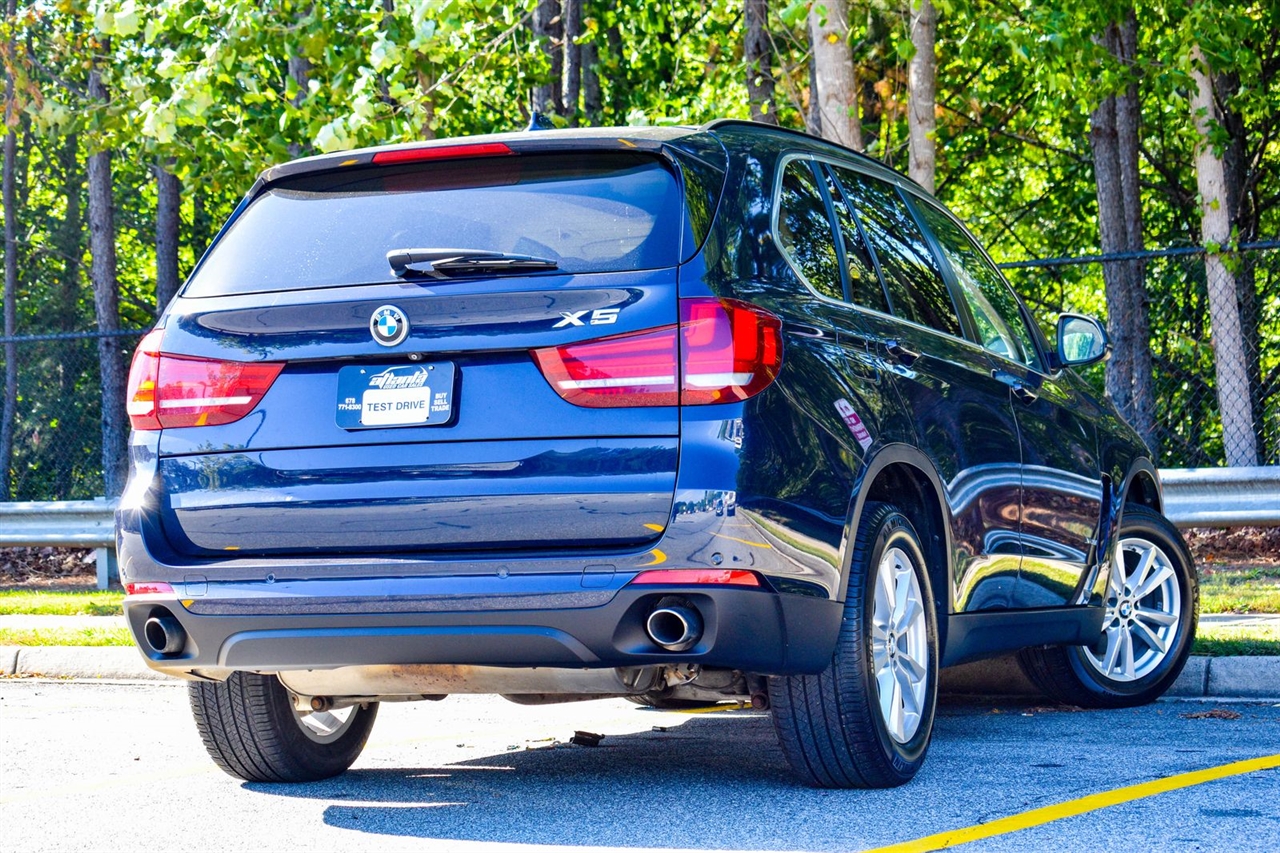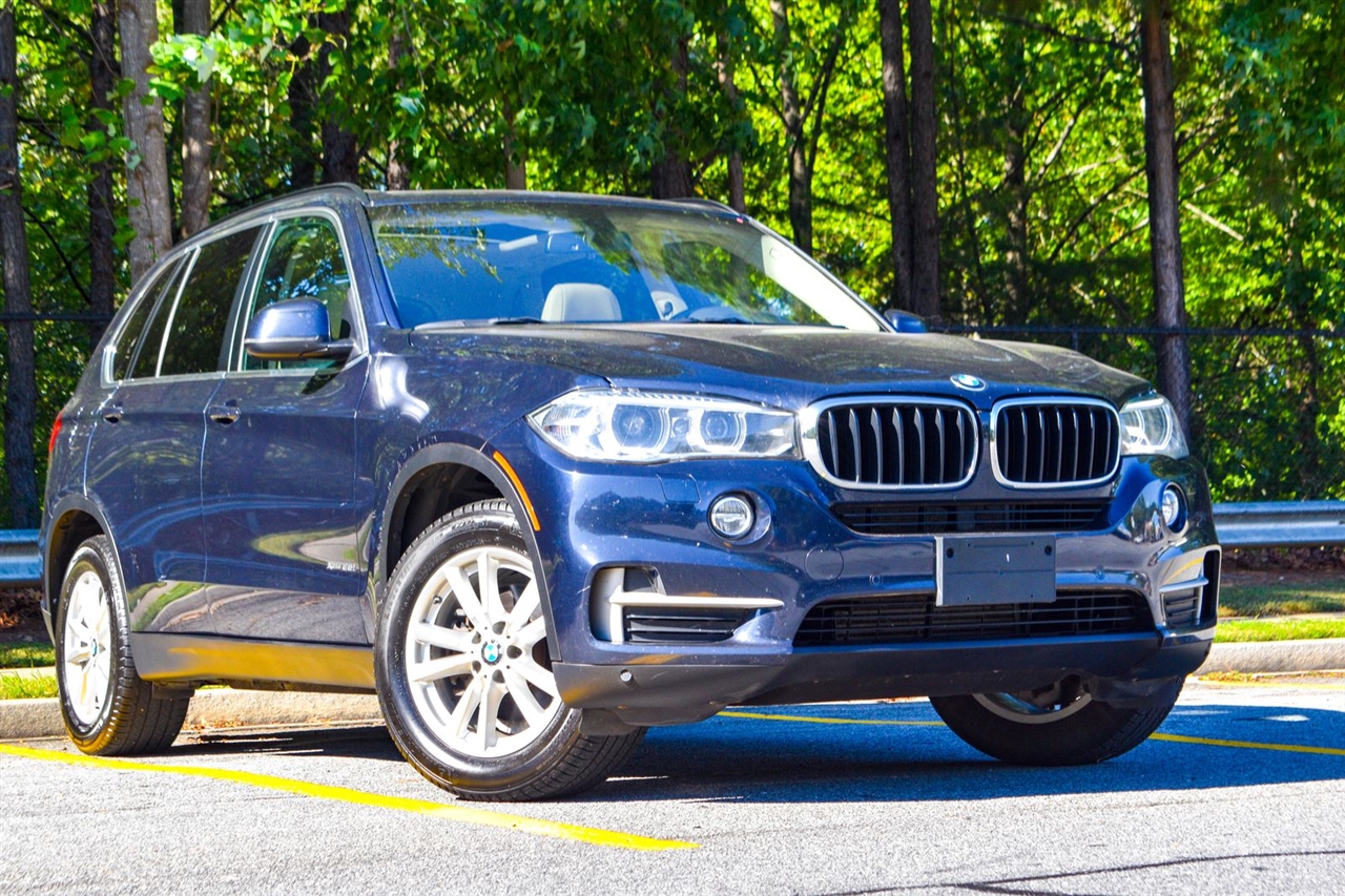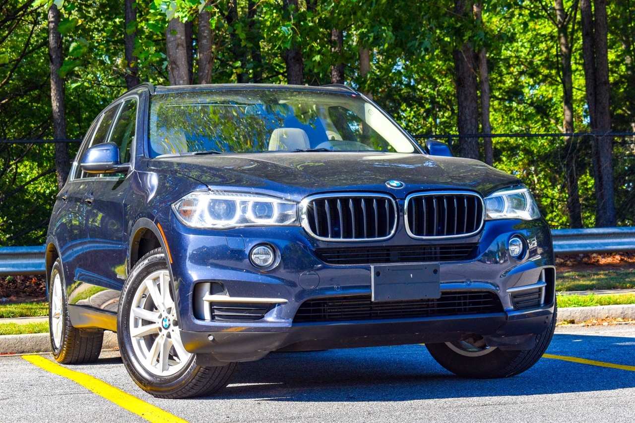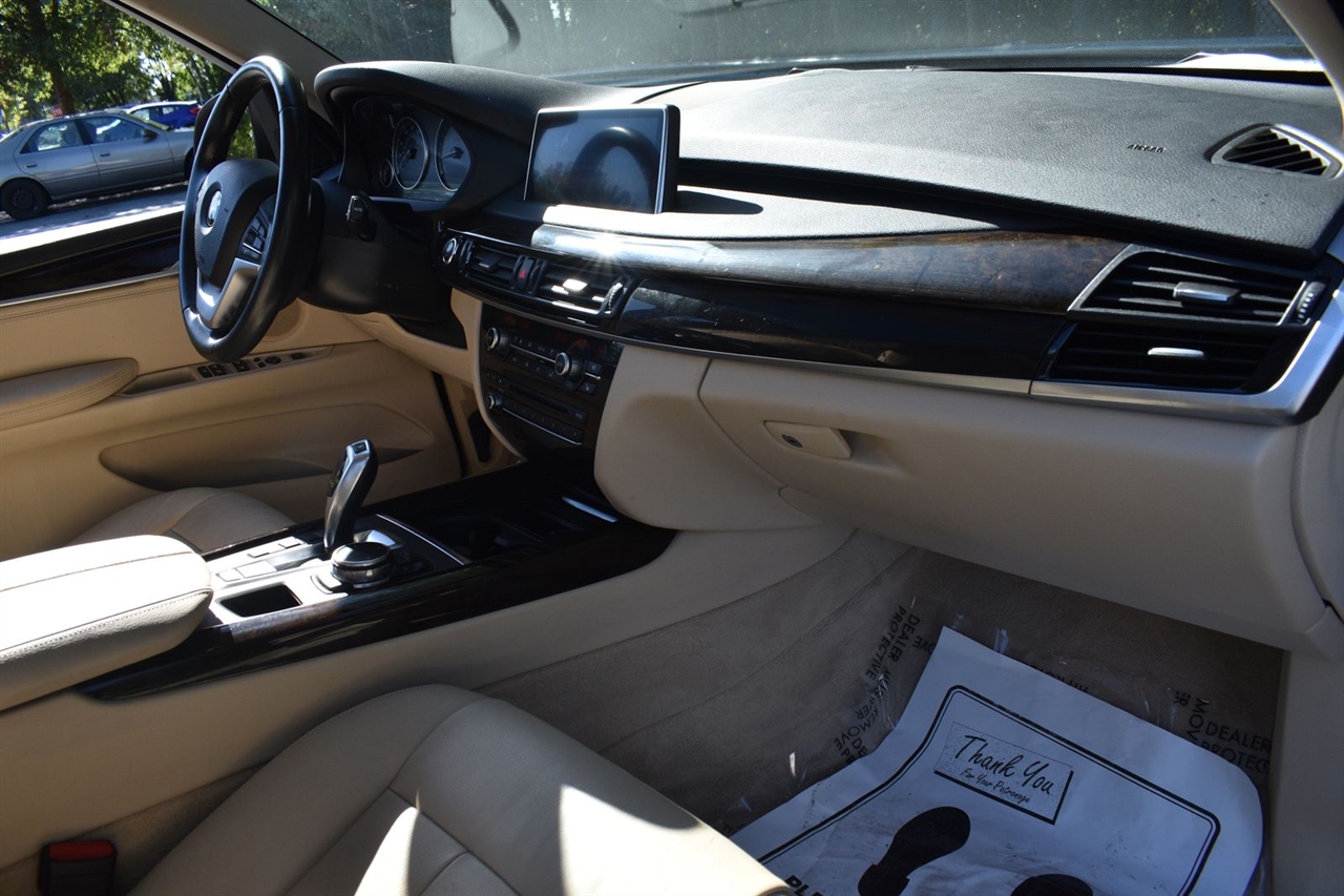 Imperial Blue Metallic 2015 BMW X5 xDrive35i AWD 8-Speed Automatic 3.0L I6 DOHC 24V TwinPower Turbo Canberra Beige Leather, 10 Speakers, 3.154 Axle Ratio, 4-Wheel Disc Brakes, ABS brakes, Air Conditioning, Alloy wheels, AM/FM radio, Anti-Theft AM/FM Stereo w/CD/MP3, Anti-whiplash front head restraints, Auto tilt-away steering wheel, Auto-dimming door mirrors, Auto-dimming Rear-View mirror, Automatic temperature control, Brake assist, Bumpers: body-color, CD player, Delay-off headlights, Driver door bin, Driver vanity mirror, Dual front impact airbags, Dual front side impact airbags, Electronic Stability Control, Emergency communication system: BMW Assist eCall, Four wheel independent suspension, Front anti-roll bar, Front Bucket Seats, Front Center Armrest, Front dual zone A/C, Front fog lights, Front reading lights, Fully automatic headlights, Garage door transmitter, Genuine wood console insert, Genuine wood dashboard insert, Genuine wood door panel insert, Head restraints memory, Heated door mirrors, Heated Front Seats, Heated front seats, Heated Rear Seats, Heated Steering Wheel, Hi-Fi Sound System, High intensity discharge headlights: Bi-xenon, High-Intensity Retractable Headlight Washers, Illuminated entry, Low tire pressure warning, Lumbar Support, Memory seat, Navigation System, Navigation System w/Touchpad, Occupant sensing airbag, Outside temperature display, Overhead airbag, Overhead console, Panic alarm, Passenger door bin, Passenger vanity mirror, Poplar Wood Trim, Power adjustable front head restraints, Power door mirrors, Power driver seat, Power Front Seats w/Driver Seat Memory, Power moonroof, Power passenger seat, Power steering, Power windows, Radio data system, Rain sensing wipers, Rear anti-roll bar, Rear reading lights, Rear seat center armrest, Rear window defroster, Rear window wiper, Rear-view Camera, Remote keyless entry, Roof rack: rails only, Security system, Sensatec Leatherette Upholstery, Speed control, Speed-sensing steering, Speed-Sensitive Wipers, Split folding rear seat, Spoiler, Sport steering wheel, Steering wheel memory, Steering wheel mounted A/C controls, Steering wheel mounted audio controls, Tachometer, Telescoping steering wheel, Tilt steering wheel, Traction control, Trip computer, Turn signal indicator mirrors, Variably intermittent wipers, Weather band radio, Wheels: 18" x 8.5" Light Alloy (Style 446).