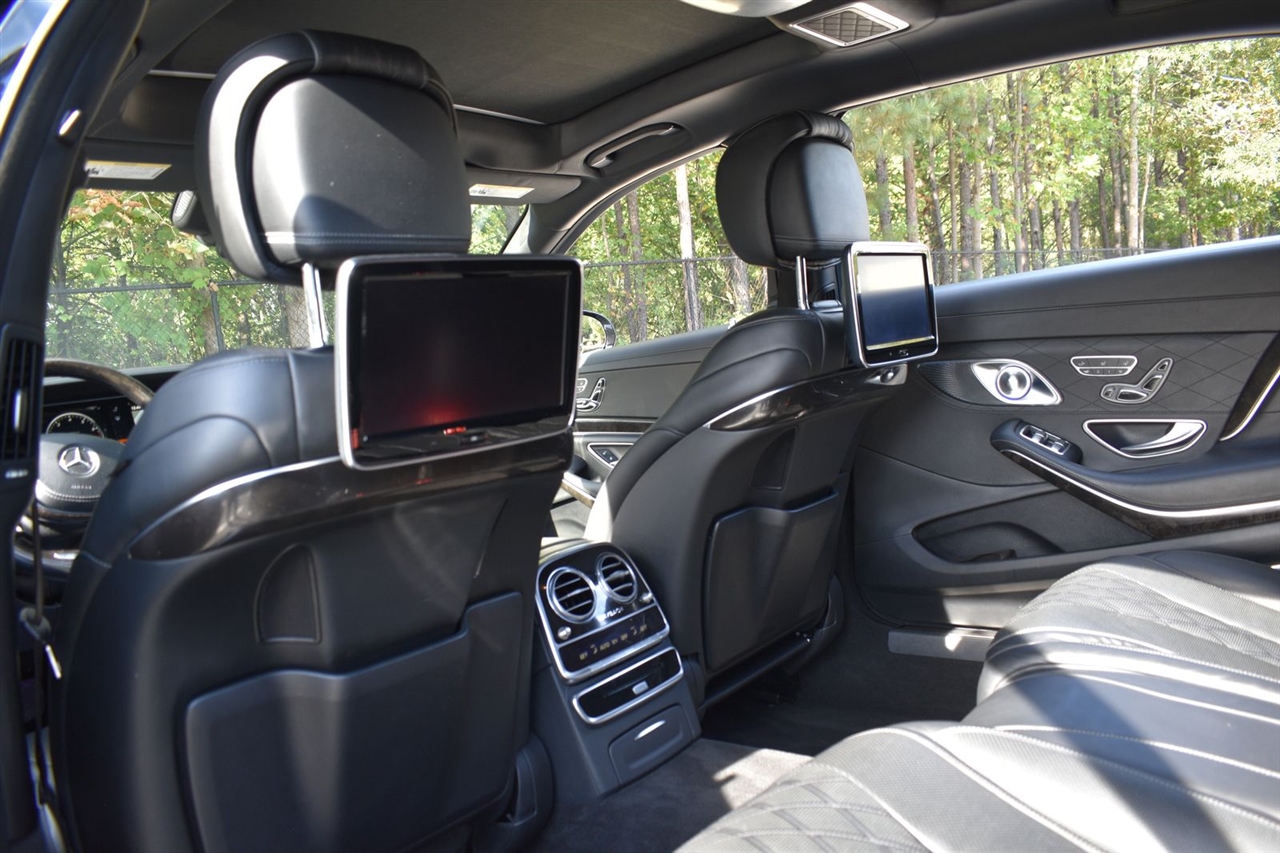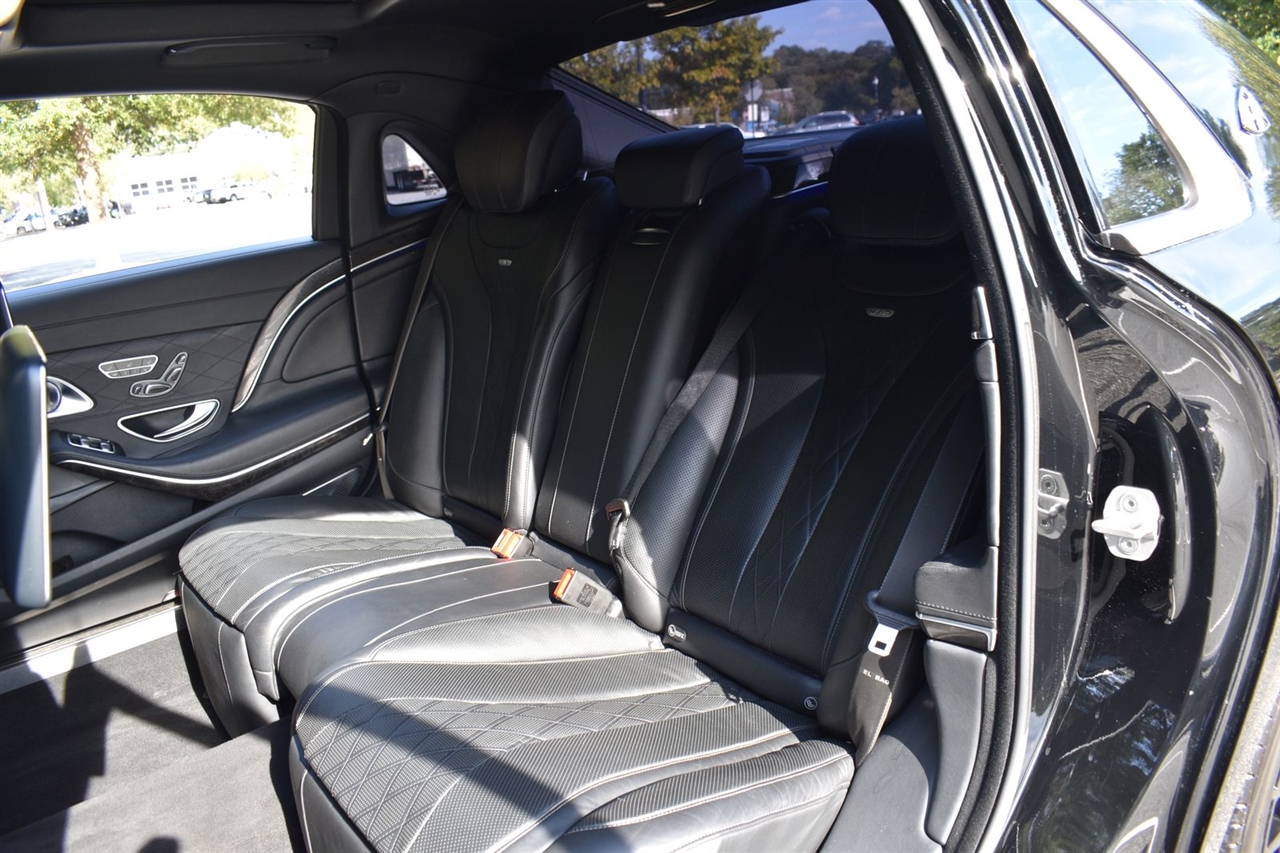 Black 2016 Mercedes-Benz S-Class Maybach S 600 RWD 7-Speed Automatic 6.0L V12 BiTurbo Leather, 4-Wheel Disc Brakes, A/V remote, ABS brakes, Adaptive suspension, Air Conditioning, Alloy wheels, AM/FM radio: SiriusXM, Anti-whiplash front head restraints, Auto High-beam Headlights, Auto tilt-away steering wheel, Auto-dimming door mirrors, Auto-dimming Rear-View mirror, Auto-leveling suspension, Automatic temperature control, Blind spot sensor: Active Blind Spot Assist active, Brake assist, Bumpers: body-color, Burl Walnut Wood Trim, CD player, Child-Seat-Sensing Airbag, Compass, Delay-off headlights, Distance-Pacing Cruise Control, Door auto-latch, Drive-Dynamic Multicontour Front Heated Seats, Driver door bin, Driver vanity mirror, Dual front impact airbags, Dual front side impact airbags, DVD-Audio, Electronic Stability Control, Emergency communication system: mbrace2, Entertainment system, Exclusive Nappa Leather Upholstery, Exterior Parking Camera Rear, Four wheel independent suspension, Front anti-roll bar, Front Bucket Seats, Front Center Armrest, Front dual zone A/C, Front reading lights, Garage door transmitter: Homelink, Genuine wood console insert, Genuine wood door panel insert, Head restraints memory, Headphones, Heads-Up Display, Heated & Active Ventilated Front Seats, Heated door mirrors, Heated front seats, Heated rear seats, Heated steering wheel, HVAC memory, Illuminated entry, Knee airbag, Leather steering wheel, Low tire pressure warning, Memory seat, Navigation system: COMAND®, Night vision lights, Occupant sensing airbag, Outside temperature display, Overhead airbag, Overhead console, Panic alarm, Passenger door bin, Passenger vanity mirror, Power adjustable front head restraints, Power adjustable rear head restraints, Power door mirrors, Power driver seat, Power moonroof, Power passenger seat, Power steering, Power windows, Premium audio system: COMAND®, Radio data system, Radio: Burmester® High-End 3D Surround Sound System, Rain sensing wipers, Rear air conditioning, Rear anti-roll bar, Rear dual zone A/C, Rear fog lights, Rear reading lights, Rear seat center armrest, Rear side impact airbag, Rear Window Blind, Rear window defroster, Remote keyless entry, Security system, Speed control, Speed-sensing steering, Steering wheel memory, Steering wheel mounted audio controls, Sun blinds, Tachometer, Telescoping steering wheel, Tilt steering wheel, Traction control, Trip computer, Turn signal indicator mirrors, Variably intermittent wipers, Ventilated front seats, Ventilated rear seats, Weather band radio, Wheels: 20" Multispoke.