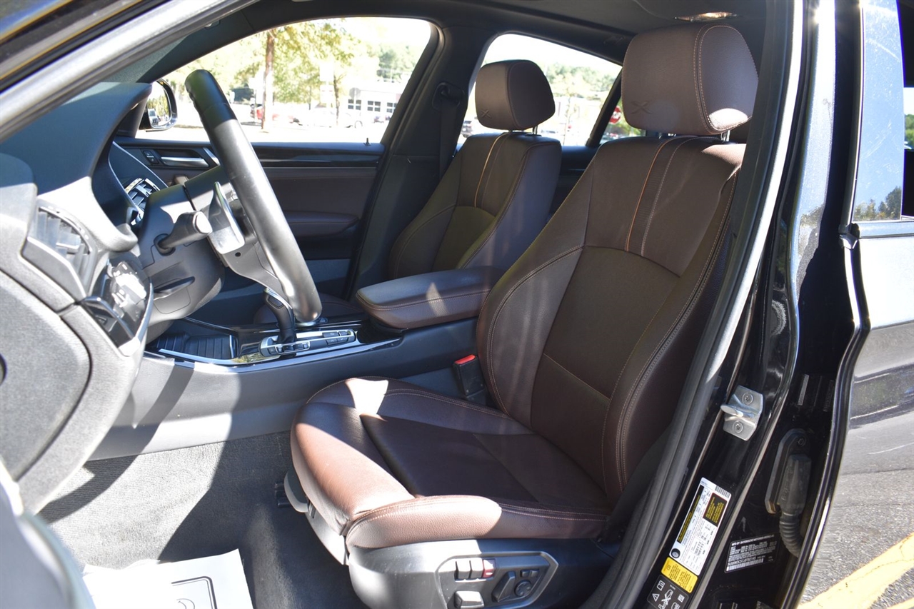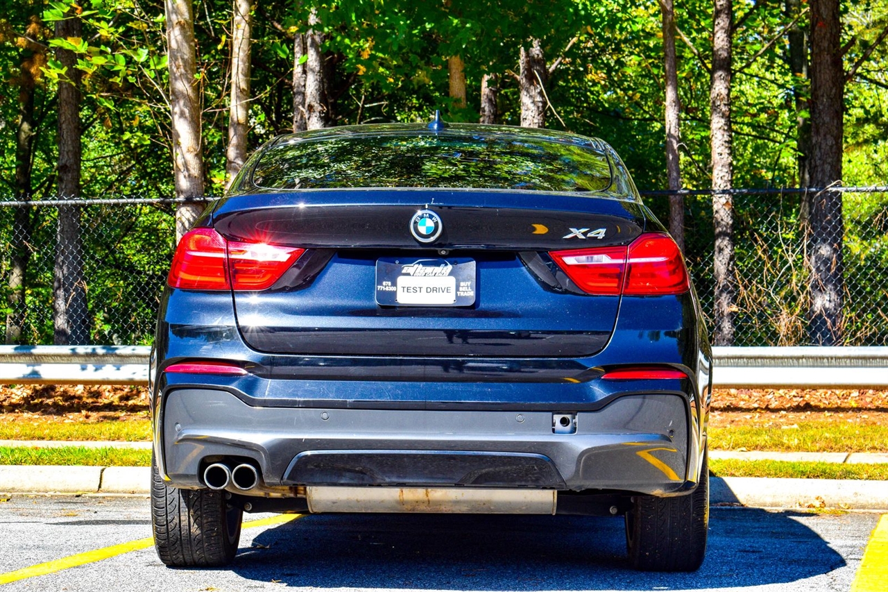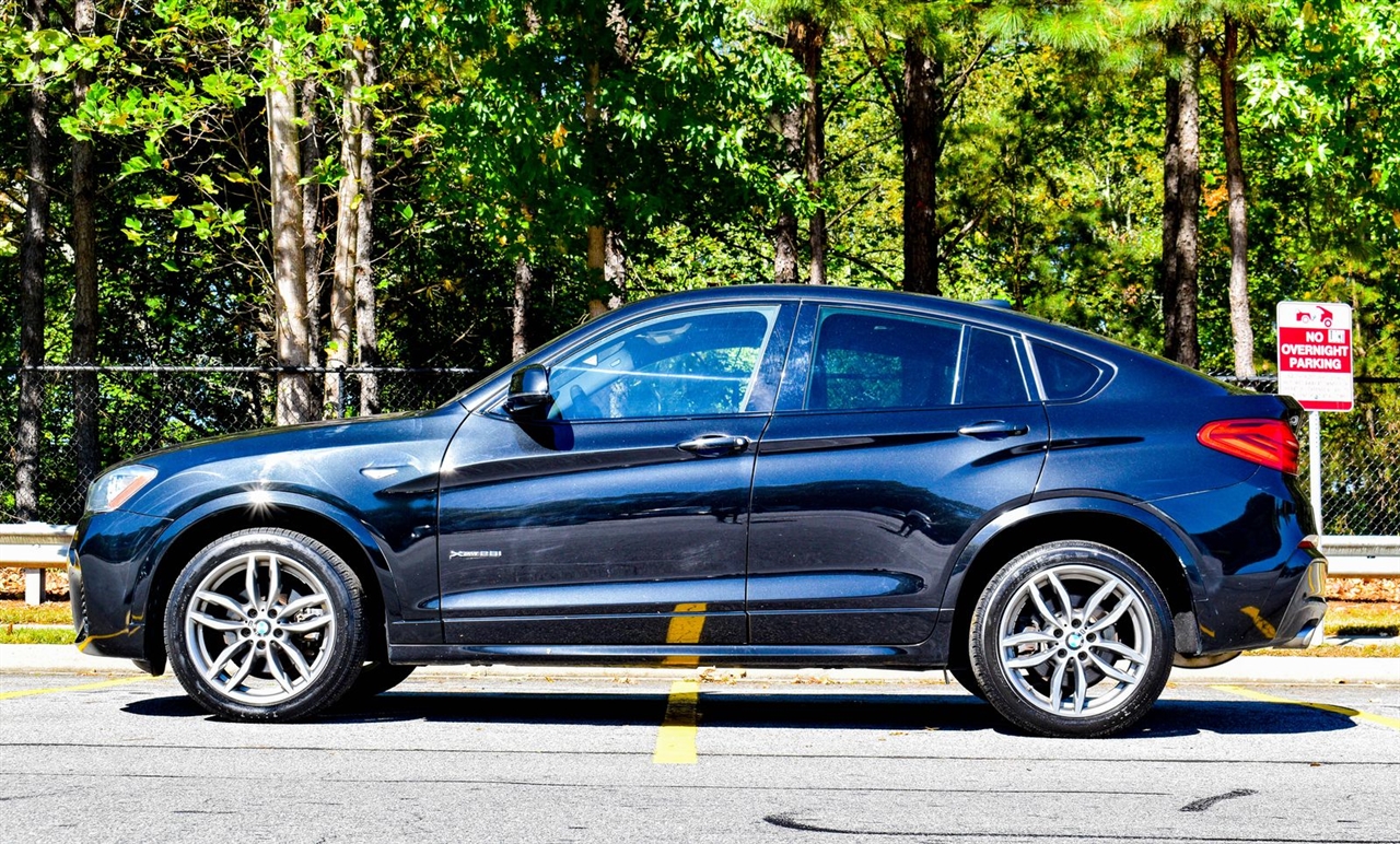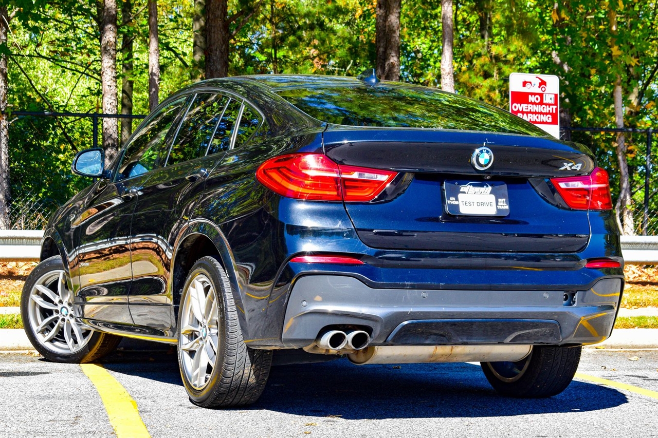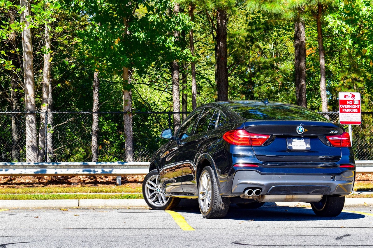 Black Sapphire Metallic 2018 BMW X4 xDrive28i AWD 8-Speed Automatic Sport 2.0L I4 TwinPower Turbo 3.385 Axle Ratio, 4-Wheel Disc Brakes, 9 Speakers, ABS brakes, ACC Stop & Go + Active Driving Assistant, Active Blind Spot Detection, Advanced Real-Time Traffic Information, Aerodynamic Kit, Air Conditioning, Alloy wheels, AM/FM radio, Anti-Theft AM/FM Stereo CD/MP3 Player, Anti-whiplash front head restraints, Apple CarPlay, Apple CarPlay Compatibility, Auto-dimming door mirrors, Auto-dimming Rear-View mirror, Automatic temperature control, Bodyside moldings, Brake assist, Bumpers: body-color, CD player, Comfort Access Keyless Entry, Delay-off headlights, Driver door bin, Driver vanity mirror, Dual front impact airbags, Dual front side impact airbags, Electronic Stability Control, Emergency communication system: BMW Assist eCall, Enhanced USB & Bluetooth, Enhanced USB & Bluetooth (ZEB), Extended Collision Mitigation, Exterior Parking Camera Rear, Four wheel independent suspension, Front anti-roll bar, Front Bucket Seats, Front Center Armrest, Front dual zone A/C, Front fog lights, Front reading lights, Fully automatic headlights, Garage door transmitter, Genuine wood console insert, harman/kardon Surround Sound System, HD Radio, Head-Up Display, Heated Front Seats, Hi-Fi Sound System, High intensity discharge headlights: Bi-xenon, Illuminated entry, Increased Top Speed Limiter, Instrument Cluster w/Extended Contents, Leather steering wheel, Low tire pressure warning, Lumbar Support, M Steering Wheel, Memory seat, Navigation System, Occupant sensing airbag, Outside temperature display, Overhead airbag, Panic alarm, Passenger door bin, Passenger vanity mirror, Power door mirrors, Power driver seat, Power Front Bucket Seats, Power Liftgate, Power moonroof, Power passenger seat, Power steering, Power windows, Radio data system, Rain sensing wipers, Rear anti-roll bar, Rear fog lights, Rear reading lights, Rear seat center armrest, Rear window defroster, Remote keyless entry, Remote Services, Security system, SensaTec Leatherette Upholstery, Shadowline Exterior Trim, SiriusXM Satellite Radio, Speed control, Speed Limit Info, Speed-sensing steering, Speed-Sensitive Wipers, Split folding rear seat, Sport Seats, Sport steering wheel, Standard Suspension, Steering wheel mounted audio controls, Tachometer, Telescoping steering wheel, Tilt steering wheel, Traction control, Trip computer, Turn signal indicator mirrors, Variably intermittent wipers, Wheels: 19" x 8.5" Light Alloy Y-Spoke (Style 608), Wheels: 19" x 8.5" M Double Spoke (Style 622M), WiFi Hotspot, Wireless Charging, Without Lines Designation Outside.