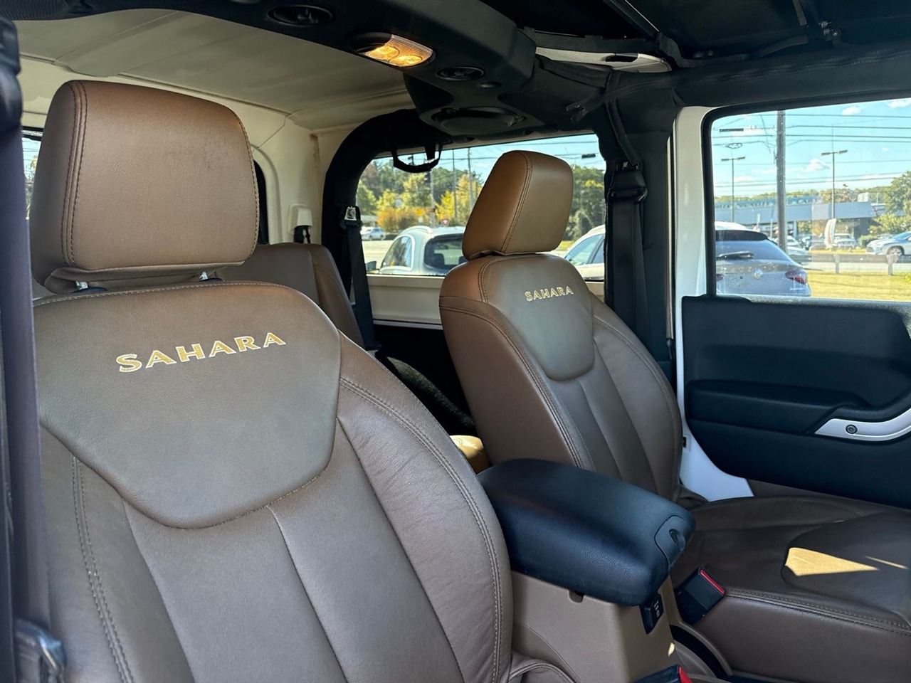 Bright White Clearcoat 2013 Jeep Wrangler Sahara 4WD 5-Speed Automatic 3.6L V6 24V VVT 1-Year SIRIUSXM Travel Link Service, 18" x 7.5" Polished Satin Carbon Wheels, 3.21 Rear Axle Ratio, 4-Wheel Disc Brakes, 40GB Hard Drive w/28GB Available, 6.5" Touch Screen Display, 7 Speakers, ABS brakes, Air Conditioning, Air Conditioning w/Auto Temperature Control, Air Filtering, Alloy wheels, AM/FM radio: SIRIUS, Audio Jack Input for Mobile Devices, Auto-dimming Rear-View mirror, Brake assist, CD player, Cloth Bucket Seats, Compass, Connectivity Group, Driver door bin, Driver vanity mirror, Dual front impact airbags, Electronic Stability Control, Freedom Panel Storage Bag, Front anti-roll bar, Front Bucket Seats, Front Center Armrest w/Storage, Front fog lights, Front reading lights, Fully automatic headlights, GPS Navigation, Heated door mirrors, Heated Front Seats, Heavy Duty Suspension w/Gas Shocks, Illuminated entry, Integrated roll-over protection, Leather steering wheel, Low tire pressure warning, Occupant sensing airbag, Outside temperature display, Panic alarm, Passenger door bin, Passenger vanity mirror, Power door mirrors, Power steering, Power windows, Quick Order Package 24G, Radio data system, Radio: Uconnect 130 AM/FM/CD/MP3, Radio: Uconnect 430N CD/DVD/MP3/HDD/NAV, Rear anti-roll bar, Rear Window Defroster, Rear Window Wiper/Washer, Remote keyless entry, Remote USB Port, Security system, SiriusXM Travel Link, Speed control, Steering wheel mounted audio controls, Tachometer, Tilt steering wheel, Tire Pressure Monitoring Display, Traction control, Trailer Tow Group, Trailer Tow w/4-Pin Connector Wiring, Trip computer, Variably intermittent wipers, Vehicle Information Center.