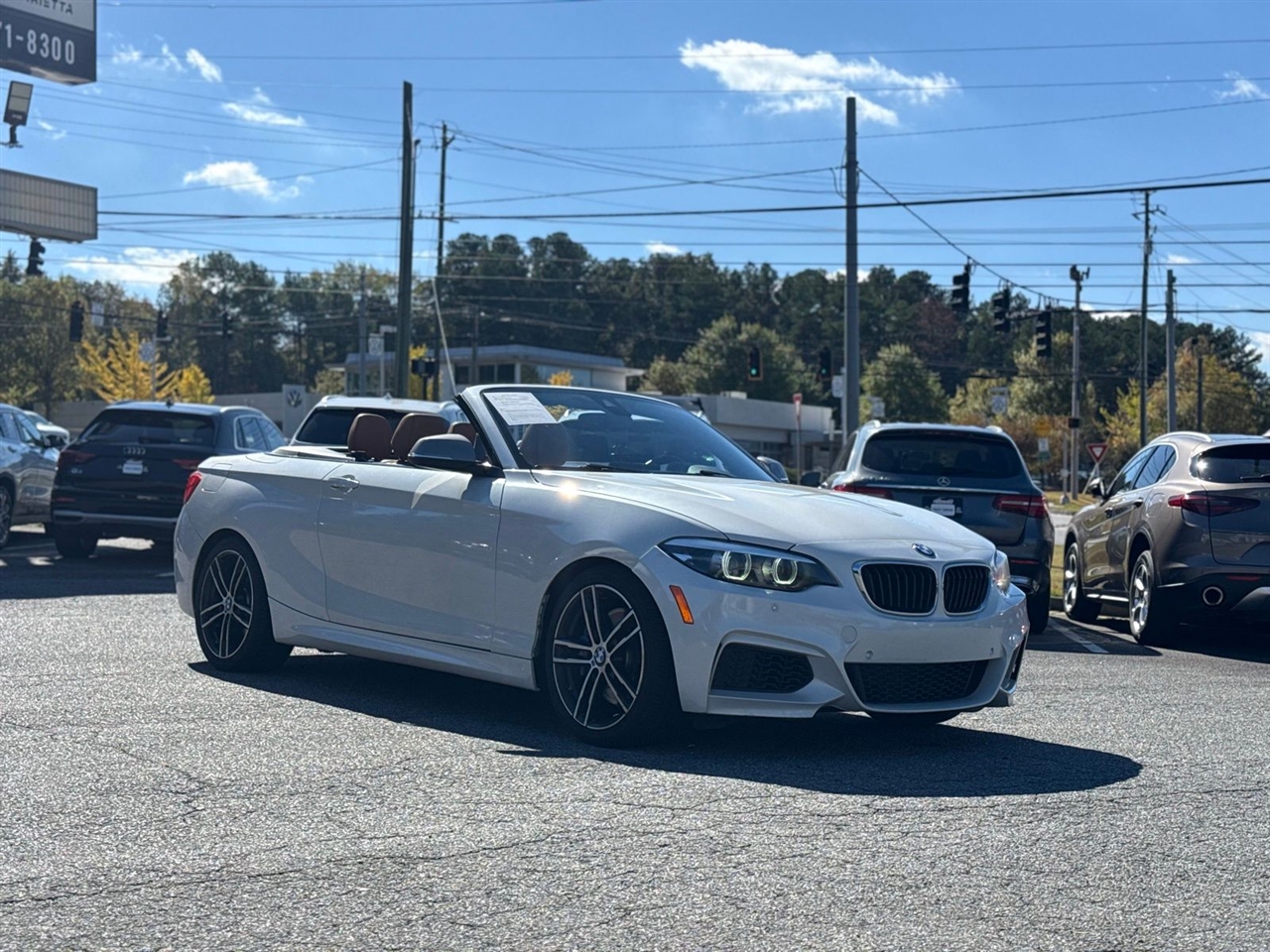 White Metallic 2018 BMW 2 Series M240i RWD 8-Speed Automatic Sport I6 4-Wheel Disc Brakes, 6 Speakers, ABS brakes, Active Driving Assistant, Adaptive suspension, Advanced Real-Time Traffic Information, Air Conditioning, Alloy wheels, AM/FM radio: SiriusXM, Apple CarPlay, Auto-dimming door mirrors, Auto-dimming Rear-View mirror, Automatic temperature control, Brake assist, Bumpers: body-color, CD player, Convertible roof lining, Convertible roof wind blocker, Delay-off headlights, Driver door bin, Driver vanity mirror, Dual front impact airbags, Dual front side impact airbags, Electronic Stability Control, Emergency communication system: BMW Assist eCall, Exterior Parking Camera Rear, Four wheel independent suspension, Front anti-roll bar, Front Bucket Seats, Front Center Armrest, Front dual zone A/C, Front reading lights, Front Sport Seats, Fully automatic headlights, Garage door transmitter, Glass rear window, Hands-Free Bluetooth & USB Audio Connection, Heated door mirrors, Heated Front Seats, Heated Steering Wheel, Hi-Fi Sound System, Illuminated entry, In-Dash CD Player, Increased Top Speed Limiter, Instrument Cluster w/Extended Contents, Integrated roll-over protection, Knee airbag, Leather Shift Knob, Low tire pressure warning, Lumbar Support, Memory seat, Navigation System, Occupant sensing airbag, Outside temperature display, Panic alarm, Park Distance Control, Parking Assistant, Passenger door bin, Passenger vanity mirror, Power convertible roof, Power door mirrors, Power driver seat, Power Front Seats, Power passenger seat, Power steering, Power windows, Radio data system, Radio: AM/FM Audio System, Rain sensing wipers, Rear anti-roll bar, Rear window defroster, Remote keyless entry, Remote Services, Security system, SensaTec Upholstery, SiriusXM Satellite Radio, Speed control, Speed Limit Info, Speed-sensing steering, Speed-Sensitive Wipers, Sport steering wheel, Steering wheel mounted audio controls, Tachometer, Telescoping steering wheel, Tilt steering wheel, Traction control, Trip computer, Turn signal indicator mirrors, Variably intermittent wipers, Wheels: 18" M Double-Spoke Bi-Color (719M).