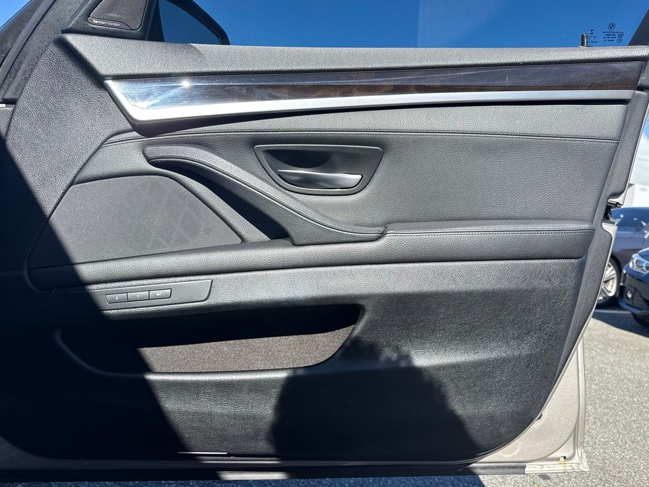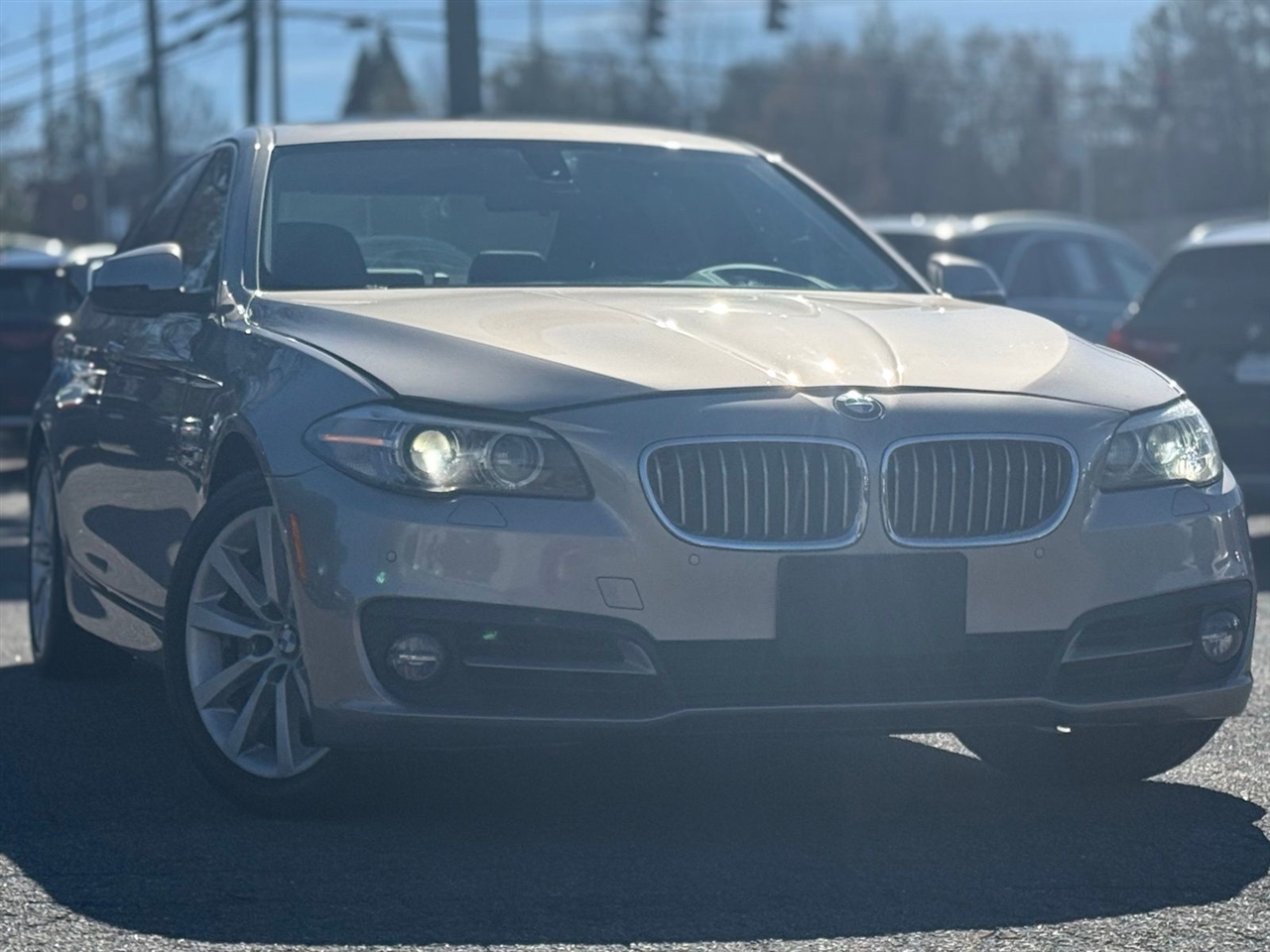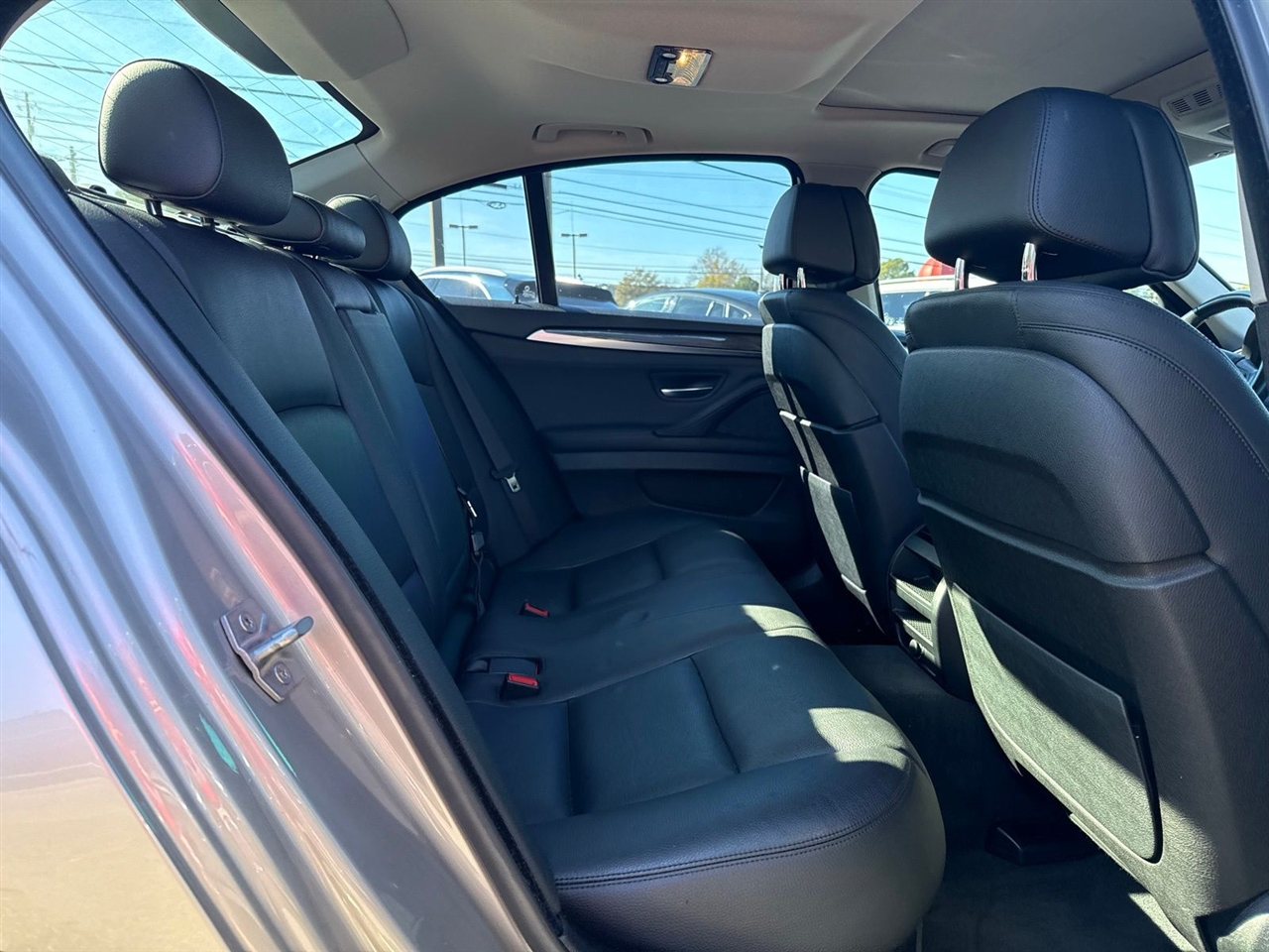 Silver Metallic 2016 BMW 5 Series 535i RWD 8-Speed Automatic 3.0L I6 DOHC 24V TwinPower Turbo Black Leather, 10 Speakers, 18" x 8.0" Light Alloy V-Spoke Wheels, 4-Wheel Disc Brakes, ABS brakes, Air Conditioning, Alloy wheels, AM/FM radio, Anti-Theft AM/FM/CD Audio System, Anti-whiplash front head restraints, Auto tilt-away steering wheel, Auto-dimming door mirrors, Auto-dimming Rear-View mirror, Automatic temperature control, Brake assist, Bumpers: body-color, CD player, Dakota Leather Upholstery, Dark Wood Trim, Delay-off headlights, Driver door bin, Driver vanity mirror, Dual front impact airbags, Dual front side impact airbags, Electronic Stability Control, Emergency communication system, Four wheel independent suspension, Front anti-roll bar, Front Bucket Seats, Front Center Armrest, Front dual zone A/C, Front fog lights, Front reading lights, Fully automatic headlights, Garage door transmitter, Genuine wood console insert, Genuine wood dashboard insert, Genuine wood door panel insert, Harman Kardon Surround Sound System, Head restraints memory, Head-Up Display, Heated door mirrors, Heated Front Seats, High intensity discharge headlights: Bi-xenon, Illuminated entry, Instrument Cluster w/Extended Contents, Leather Shift Knob, Leather steering wheel, Low tire pressure warning, Lumbar Support, Memory seat, MP3 decoder, Multi-Contour Seats, Navigation System, Occupant sensing airbag, Outside temperature display, Overhead airbag, Panic alarm, Park Distance Control, Passenger door bin, Passenger vanity mirror, Power adjustable front head restraints, Power door mirrors, Power driver seat, Power Front Seats, Power moonroof, Power passenger seat, Power steering, Power windows, Radio data system, Rain sensing wipers, Rear air conditioning, Rear anti-roll bar, Rear reading lights, Rear seat center armrest, Rear window defroster, Rear-View Camera, Remote keyless entry, Security system, Speed control, Speed-sensing steering, Speed-Sensitive Wipers, Split folding rear seat, Sport Leather Steering Wheel, Sport steering wheel, Steering wheel memory, Steering wheel mounted A/C controls, Steering wheel mounted audio controls, Tachometer, Telescoping steering wheel, Tilt steering wheel, Traction control, Trip computer, Turn signal indicator mirrors, Variably intermittent wipers.