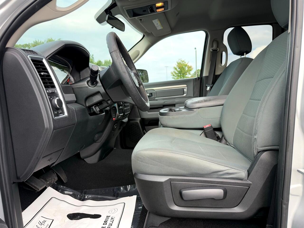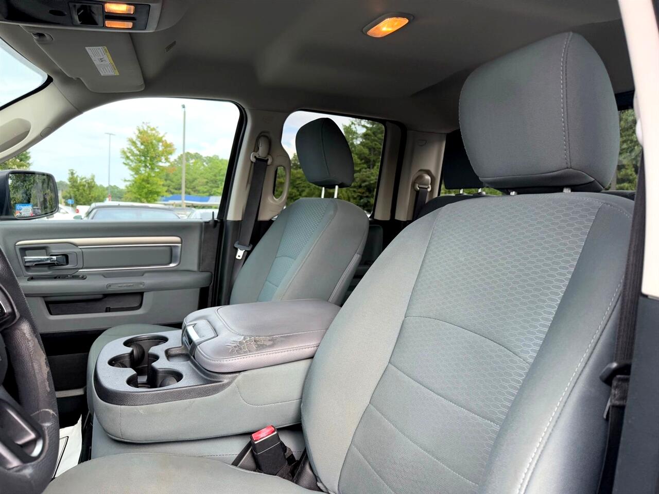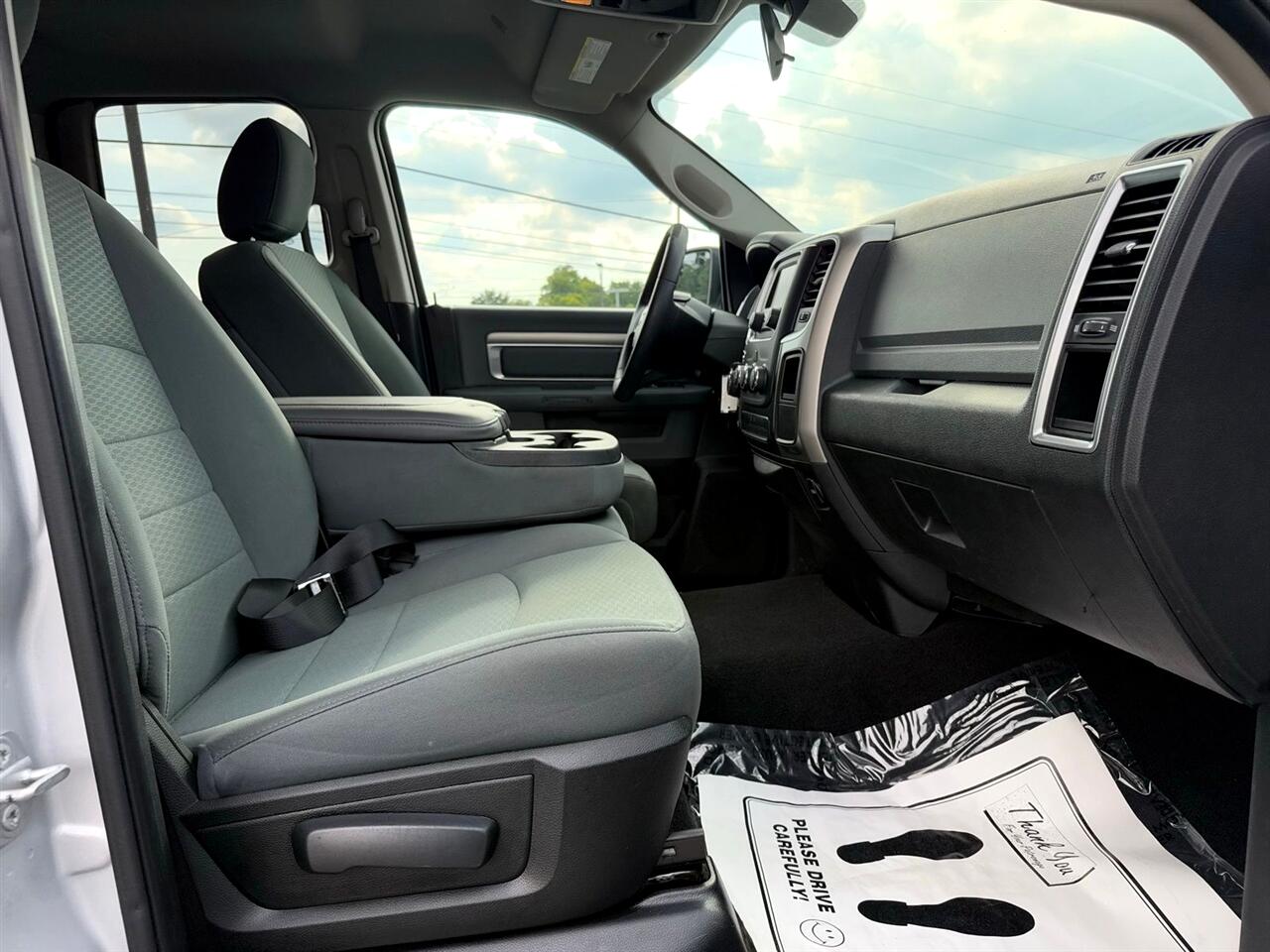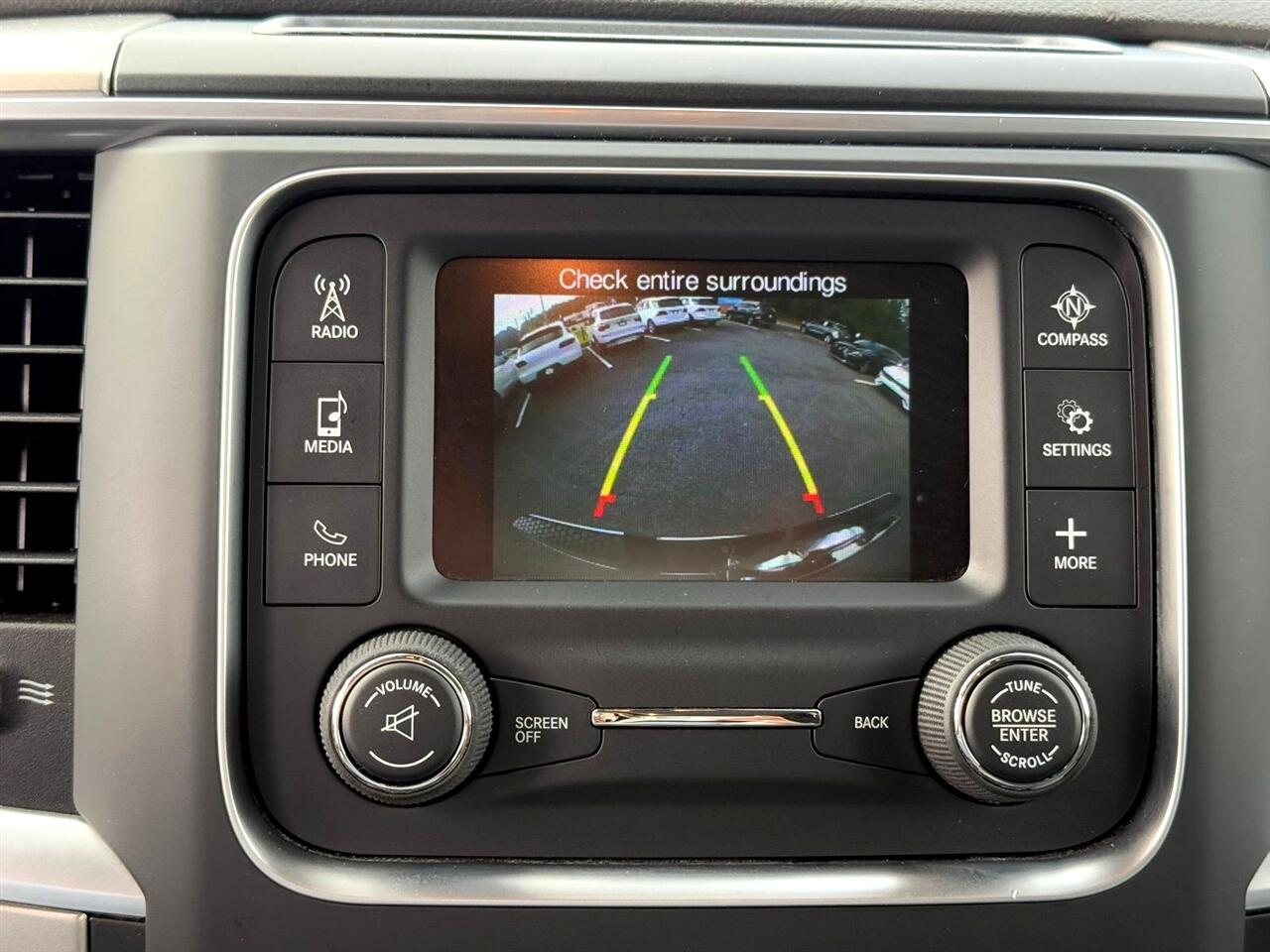 Bright Silver Metallic Clearcoat 2018 Ram 1500 SLT RWD 8-Speed Automatic HEMI 5.7L V8 Multi Displacement VVT 3.21 Rear Axle Ratio, 4-Wheel Disc Brakes, 40/20/40 Split Bench Seat, 6 Speakers, ABS brakes, Active Grille Shutters, Air Conditioning, Alloy wheels, AM/FM radio: SiriusXM, Black Exterior Mirrors, Brake assist, Bumpers: chrome, Center Hub, Charge Only Remote USB Port, Compass, Delay-off headlights, Driver door bin, Dual front impact airbags, Dual front side impact airbags, Electronic Shift, Electronic Stability Control, Exterior Mirrors w/Heating Element, Front anti-roll bar, Front Armrest w/3 Cupholders, Front Center Armrest w/Storage, Front reading lights, Front wheel independent suspension, Fully automatic headlights, GPS Antenna Input, Heated door mirrors, Illuminated entry, Integrated Voice Command w/Bluetooth, Low tire pressure warning, Manufacturer's Statement of Origin, Occupant sensing airbag, Outside temperature display, Overhead airbag, Overhead console, Panic alarm, ParkView Rear Back-Up Camera, Passenger door bin, Passenger vanity mirror, Power door mirrors, Power steering, Power windows, Radio data system, Rear anti-roll bar, Rear Power Sliding Window, Rear step bumper, Remote keyless entry, SiriusXM Satellite Radio, Speed control, Tachometer, Tilt steering wheel, Tip Start, Traction control, Trip computer, Variably intermittent wipers, Voltmeter.