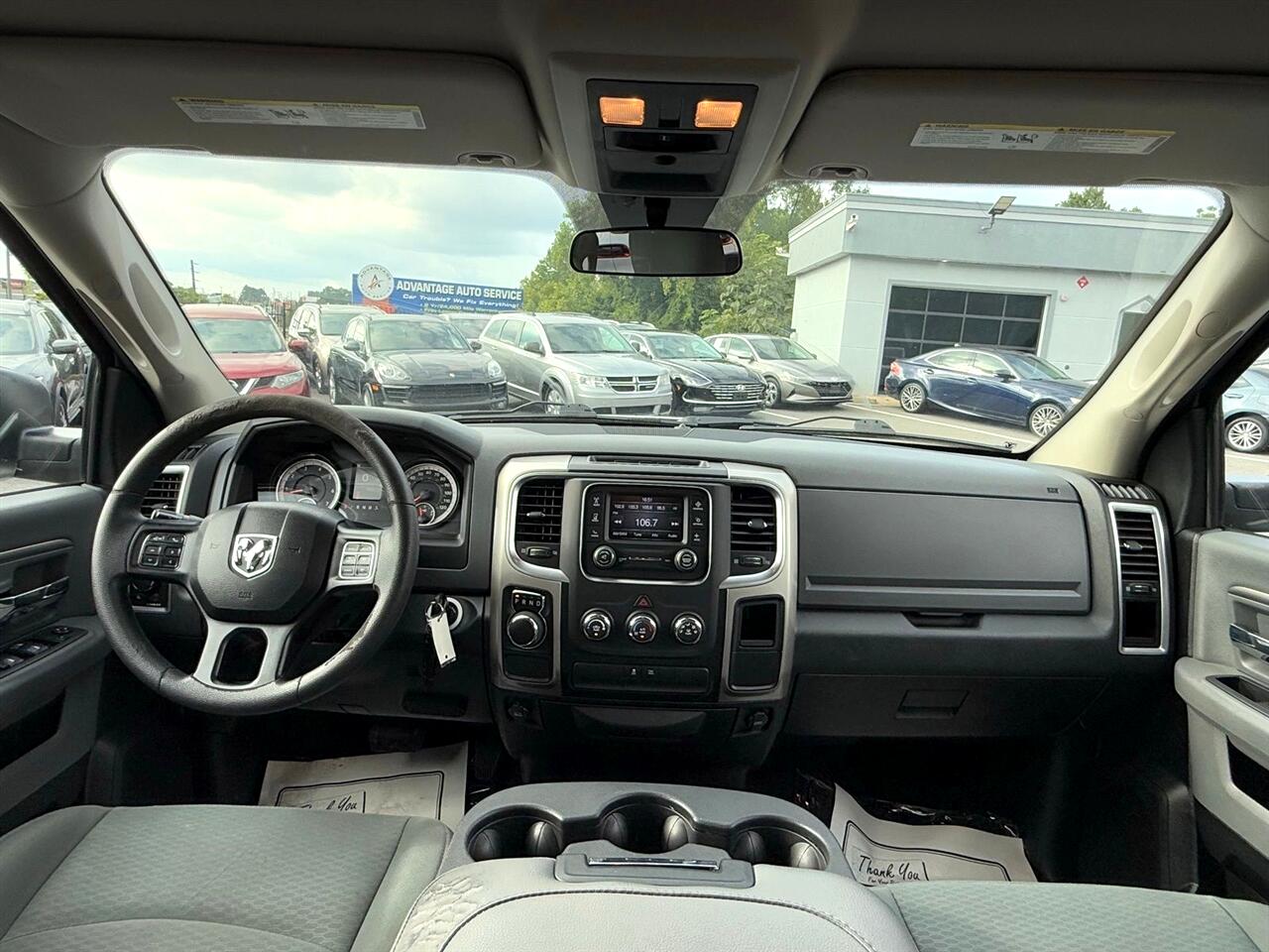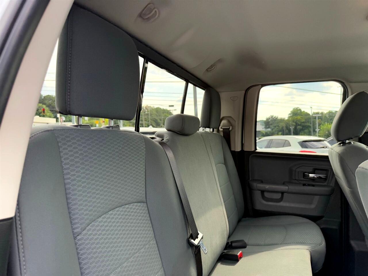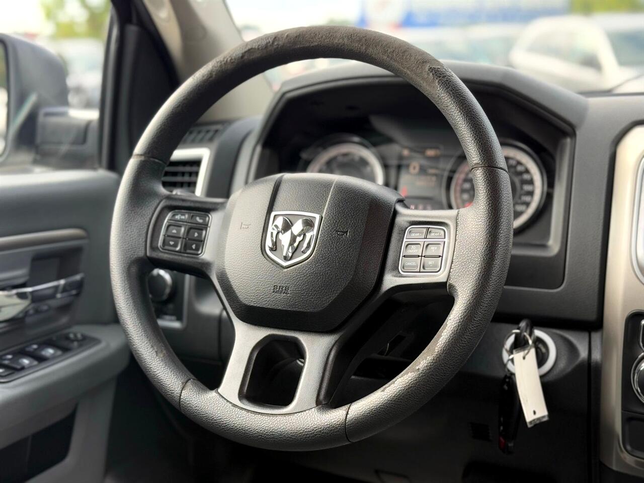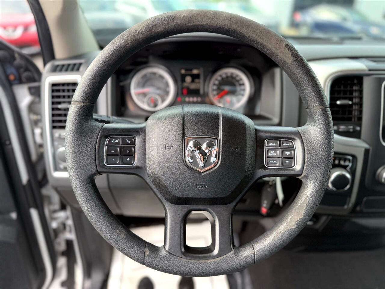 Bright Silver Metallic Clearcoat 2018 Ram 1500 SLT RWD 8-Speed Automatic HEMI 5.7L V8 Multi Displacement VVT 3.21 Rear Axle Ratio, 4-Wheel Disc Brakes, 40/20/40 Split Bench Seat, 6 Speakers, ABS brakes, Active Grille Shutters, Air Conditioning, Alloy wheels, AM/FM radio: SiriusXM, Black Exterior Mirrors, Brake assist, Bumpers: chrome, Center Hub, Charge Only Remote USB Port, Compass, Delay-off headlights, Driver door bin, Dual front impact airbags, Dual front side impact airbags, Electronic Shift, Electronic Stability Control, Exterior Mirrors w/Heating Element, Front anti-roll bar, Front Armrest w/3 Cupholders, Front Center Armrest w/Storage, Front reading lights, Front wheel independent suspension, Fully automatic headlights, GPS Antenna Input, Heated door mirrors, Illuminated entry, Integrated Voice Command w/Bluetooth, Low tire pressure warning, Manufacturer's Statement of Origin, Occupant sensing airbag, Outside temperature display, Overhead airbag, Overhead console, Panic alarm, ParkView Rear Back-Up Camera, Passenger door bin, Passenger vanity mirror, Power door mirrors, Power steering, Power windows, Radio data system, Rear anti-roll bar, Rear Power Sliding Window, Rear step bumper, Remote keyless entry, SiriusXM Satellite Radio, Speed control, Tachometer, Tilt steering wheel, Tip Start, Traction control, Trip computer, Variably intermittent wipers, Voltmeter.
